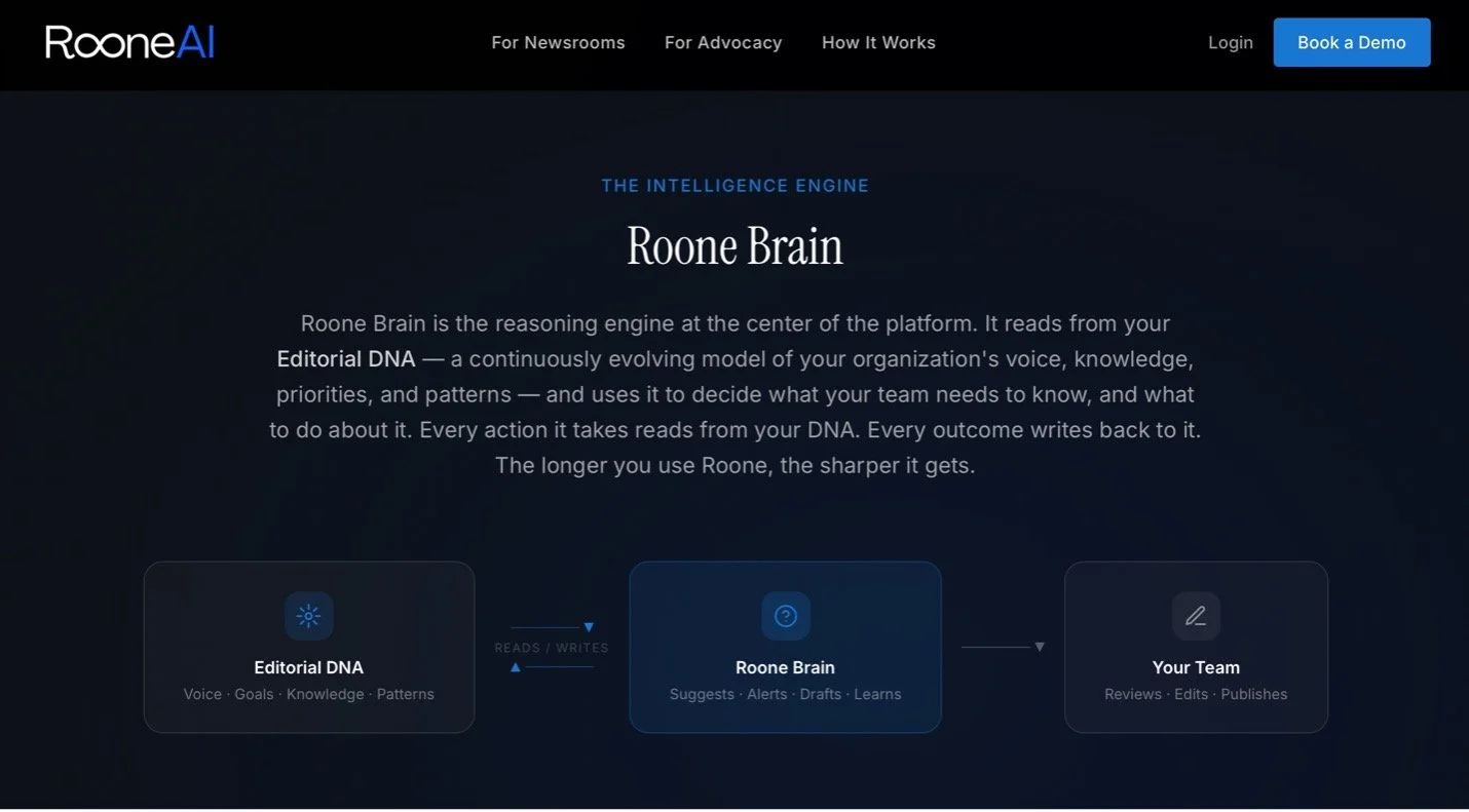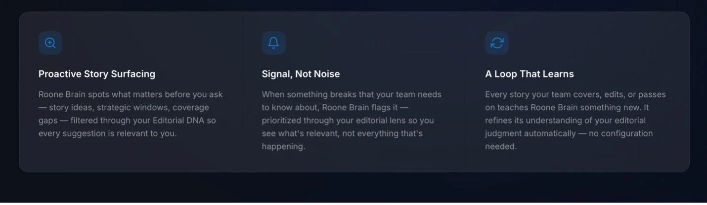 RooneAI isn’t software you simply log into—it’s communications infrastructure we build with you. Named for legendary ABC executive Roone Arledge, who transformed how audiences experience news and television, RooneAI is an end-to-end system designed to help organizations scale their communications without adding staff.