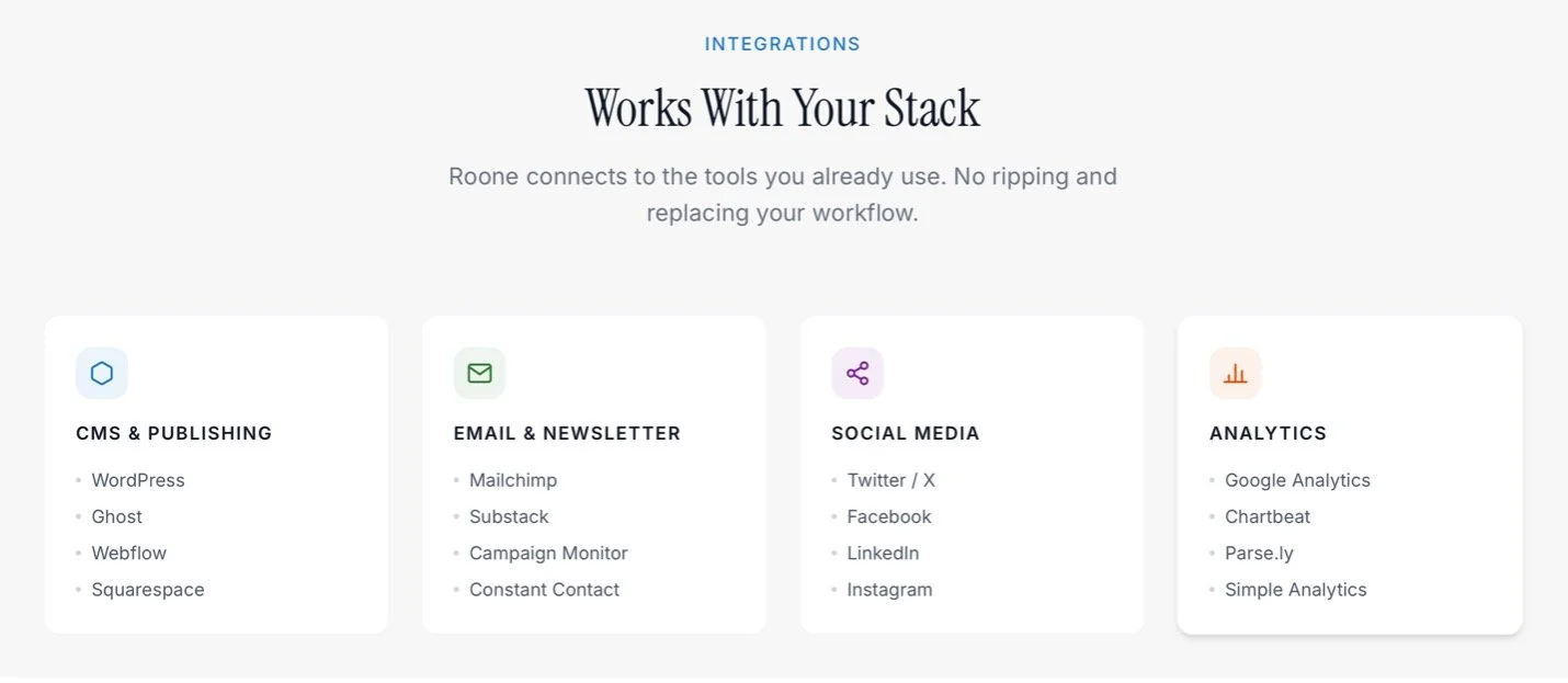 Content Creation: From there, it creates content and distributes it through your existing communications and marketing channels. From thought leadership pieces to reporter pitches, blog posts and coalition emails, RooneAI automates content production in minutes that normally would take days to create.
